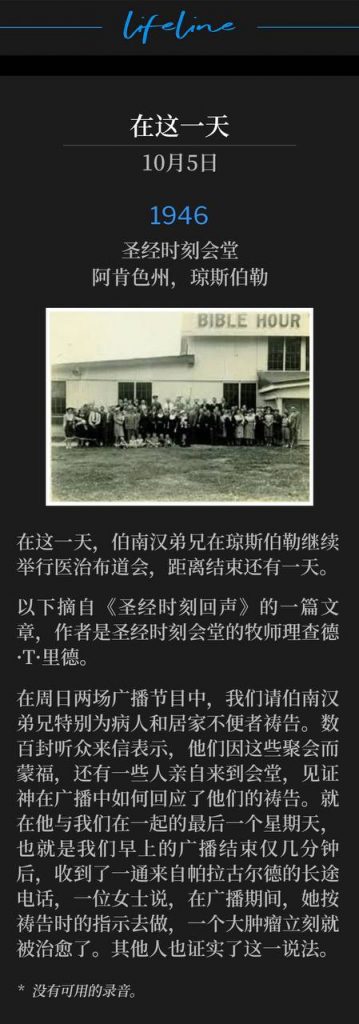 他也是这么告诉我的。我说:“瞧这里,你这个歪脚的。如果你不……如果你想……如果你喜欢听我见证神的荣耀,就呆在这边。但你别想摇动我离开那个。如果你喜欢听那些神的见证和对神医治的赞美,就呆在旁边。我会竭尽全力地大声见证,持守住。呆在旁边听吧。我邀请你来听。呆在旁边。”